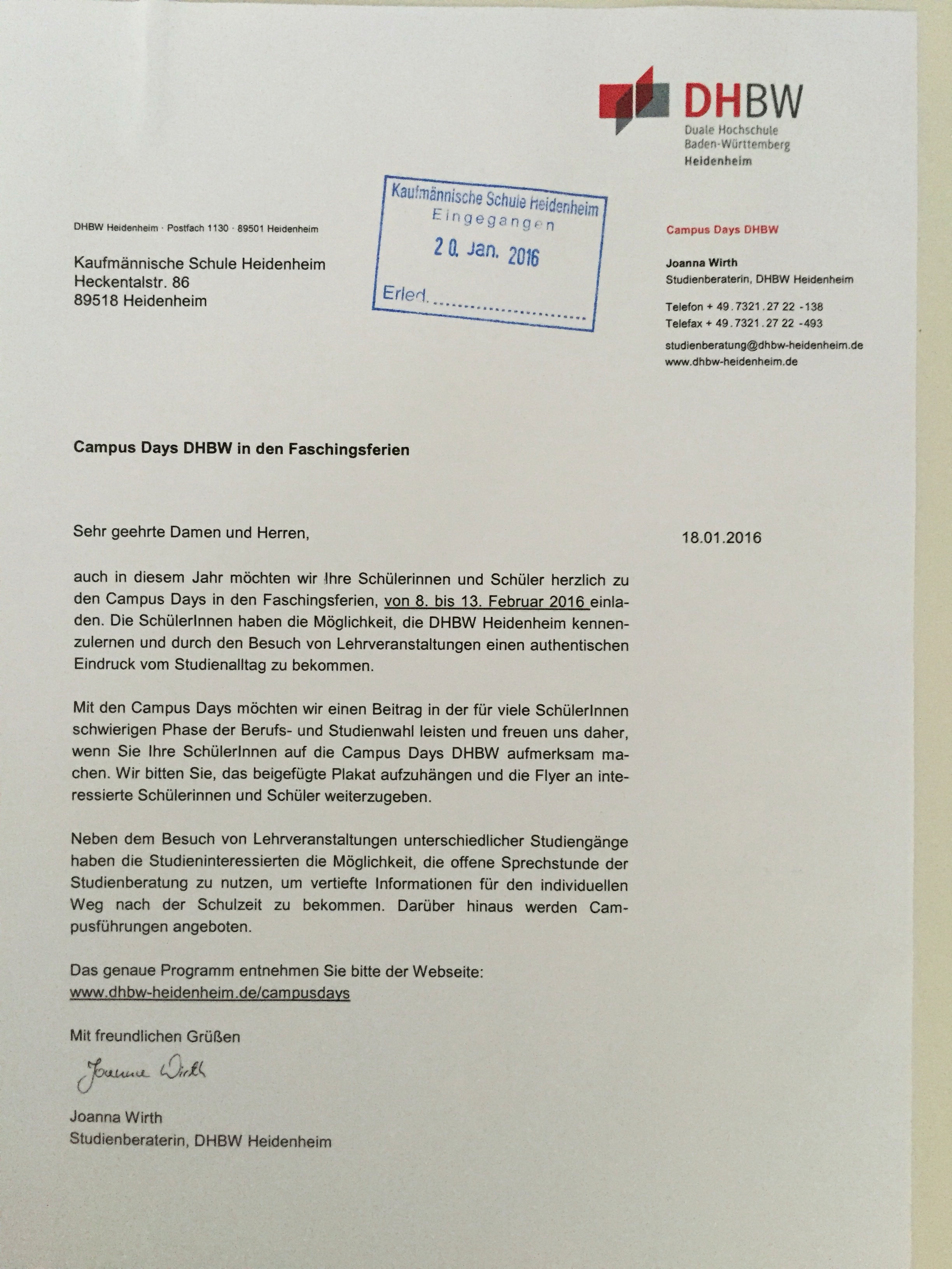 Kaufmännische Schule Heidenheim > Hochschulinfos > 8.-13.2.16 Campus Days DHBW Heidenheim