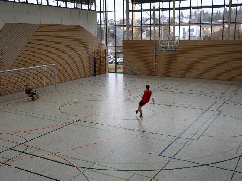 Vorweihnachtszeit bedeutet an der Kaufmännischen Schule auch immer Fußballzeit. Am 9. Dezember war es wieder so weit: 19 Schülermannschaften und eine Lehrermannschaft spielten um den Einzug in die Hauptrunde. Zur Einstimmung auf den Fußballvormittag trat die SMV-Mannschaft in einem Eröffnungsspiel gegen die Lehrer-Auswahl an. Das Spiel entschieden die Lehrer für sich.